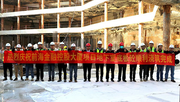 近日,歷經(jīng)55小時的晝夜奮戰(zhàn),前海金融控股大廈項目大底板澆筑工程圓滿完成。