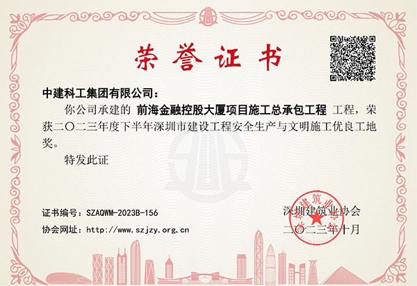 近日,深圳建筑業(yè)協(xié)會(huì)公布了《關(guān)于2023年度下半年深圳市建設(shè)工程安全生產(chǎn)與文明施工優(yōu)良工地獎(jiǎng)的表彰決定》,前海金融控股大廈項(xiàng)目榮獲2023年度下半年深圳市建設(shè)工程安全生產(chǎn)與文明施工優(yōu)良工地獎(jiǎng)。