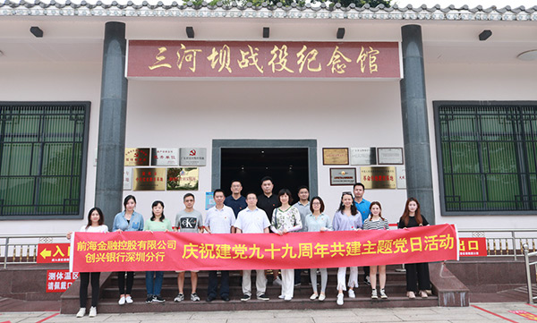 在中國(guó)共產(chǎn)黨成立九十九周年之際,為推動(dòng)支部黨員深入貫徹落實(shí)習(xí)近平新時(shí)代中國(guó)特色社會(huì)主義思想和黨的十九大精神,推進(jìn)“不忘初心、牢記使命”主題教育常態(tài)化,提高支部黨員黨性修養(yǎng),近日,前海金控第二黨支部、第八黨支部聯(lián)合創(chuàng)興銀行深圳分行共赴廣東省梅州市紅色革命教育基地,開(kāi)展慶祝建黨九十九周年共建主題黨日活動(dòng)。