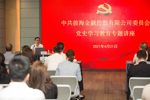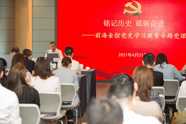隨后,深圳市黨史辦副主任王地久應(yīng)邀作黨史學(xué)習(xí)教育專題宣講。貫穿黨史和深圳改革開放史,從深圳的前世今生出發(fā),全面介紹了深圳的歷史變遷、特區(qū)早期的改革探索、推動特區(qū)建立和改革發(fā)展的重要歷史人物以及特區(qū)成立40年以來的重大改革探索與成效等內(nèi)容,并對今后如何進一步深化黨史學(xué)習(xí)教育進行了系統(tǒng)深入解讀,為大家深入貫徹前海合作區(qū)黨工委黨史學(xué)習(xí)教育方案,落實國家戰(zhàn)略、深化深港更緊密合作、加快建設(shè)國際化城市新中心和金控公司發(fā)展提供了豐富的理論分析和實踐參考。