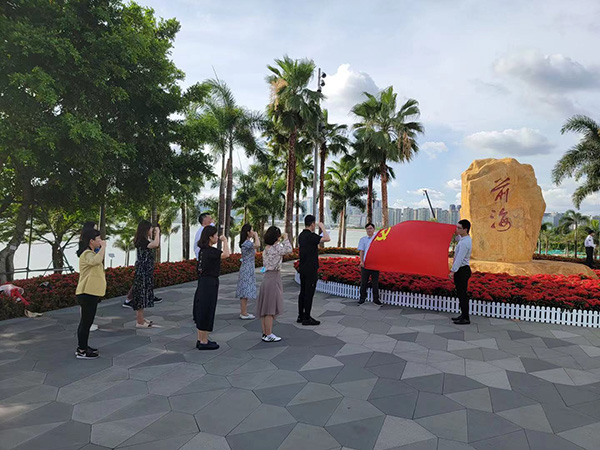 活動的第一站是前海石公園。前海石作為前海最具代表性的標志物,承載著前海精神,見證了前海從一片灘涂到一座現(xiàn)代化新城的蛻變。參與活動的黨員在前海石前重溫入黨誓詞,再次感受入黨宣誓時的莊嚴承諾和堅定決心,激勵自己不忘初心、牢記使命、永遠奮斗,不斷保持共產(chǎn)黨員的先進性,以更加飽滿的熱情投身到前海的建設工作中。