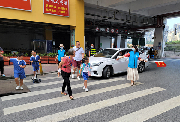 龍海家園是深圳最大的小區(qū)之一,橫跨桂灣三路、桂灣四路兩條市政道路。兩條道路在早晚高峰時段車流量較大,且桂灣三路一處人行橫道未設置信號燈,每天下午放學及下班時段經(jīng)常出現(xiàn)人車混流導致的交通混亂等狀況,社區(qū)需要志愿者在路口維持秩序,引導行人和車輛有序交替通行。