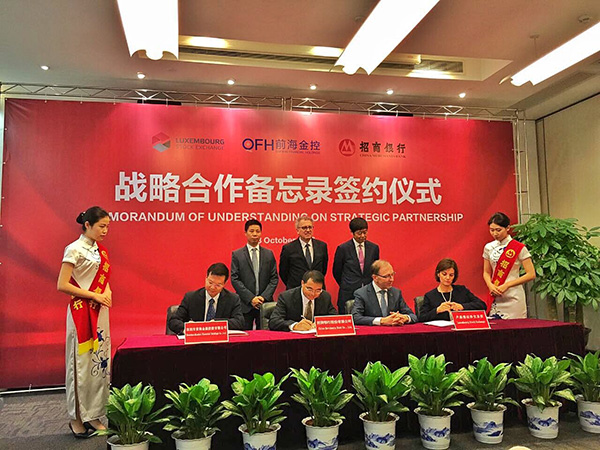 10月28日,盧森堡證券交易所(以下簡稱“盧交所”)與前海金融控股有限公司(以下簡稱“前海金控”)、招商銀行股份有限公司(以下簡稱“招商銀行”)正式簽署合作諒解備忘錄。前海金控成為國內(nèi)首個與盧交所建立正式合作關(guān)系的國資金融控股企業(yè)。
